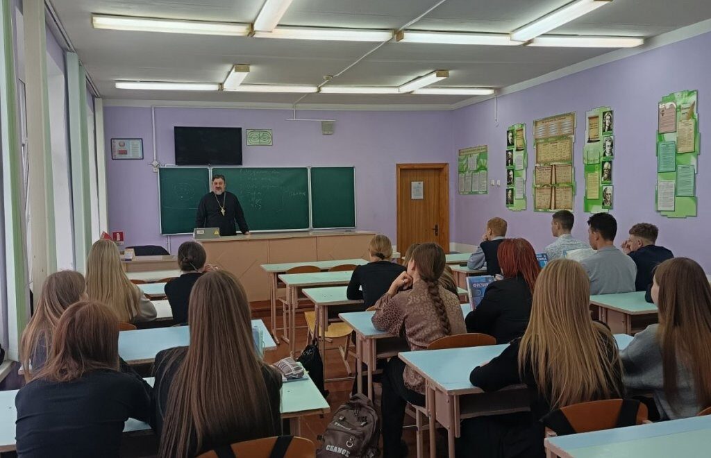 В Тихиничской школе прошла встреча старшеклассников с настоятелем прихода храма святого Архангела Михаила, протоиереем Николаем Степановым. Тема беседы «Формирование личности и вызовы времени» была близка и актуальна для молодых людей, стоящих на пороге взрослой жизни.